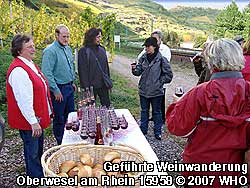 Weinwandertag (auch für Einzelbucher) oder Weinbergs-Wanderung für Gruppen Wander-Touren oder Weinbergsrundfahrt als Planwagenfahrt mit Weinprobe im Weinberg. Mit einem Winzer durch die Weinlagen der Rhein-Weinregionen wandern bei Koblenz, Boppard, Oberwesel, Bacharach, Rüdesheim, Eltville, Nierstein, Hochheim am Main. – Im Winter Glühwein-Wanderung mit Weihnachtsfeier im Weinlokal, Silvesterwanderung, Neujahrswanderung.